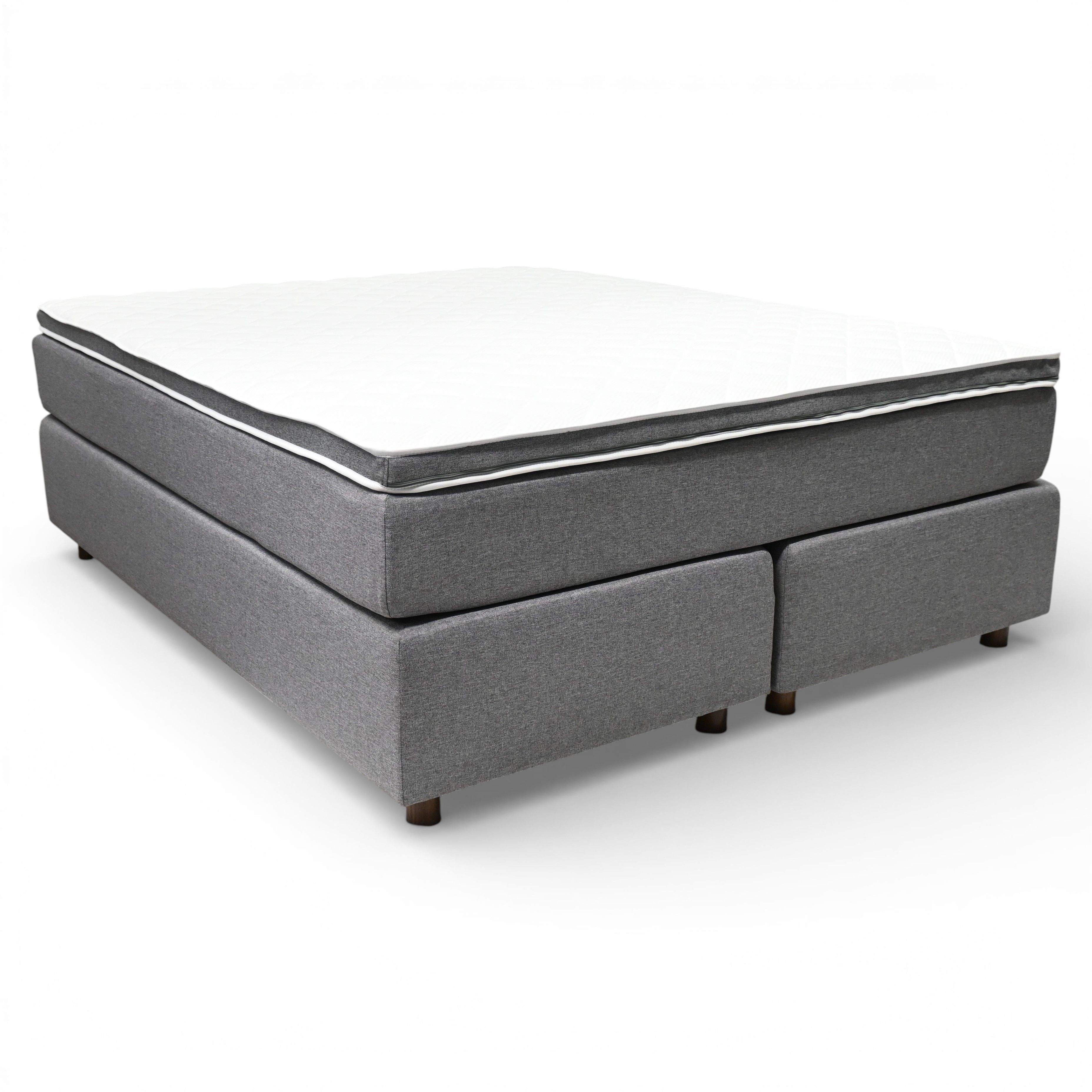 Diamondin ulkoasu hivelee silmää hillityllä kaksivärisyydellään. Vaaleanharmaa Malmo 90 -huonekalukangas verhoilee tyylikkäästi sängyn rungon, kun taas valkoinen Stretch-kangas päällystää patjan pinnan raikkaalla, hengittävällä tekstiilillä. Lopputulos on ajaton ja skandinaavinen – vuode, joka sulautuu saumattomasti moderniin sisustukseen ja pysyy tyylikkäänä vuodesta toiseen.